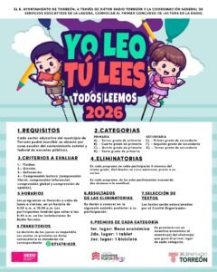En el marco de las actividades conmemorativas por el 35 aniversario de Radio Torreón 96.3 FM, se llevó a cabo la presentación de los concursos “Yo leo, tú lees, todos leemos” y “Pinta tu Música”, iniciativas que buscan fomentar el hábito de la lectura y la pintura entre niñas, niños y jóvenes de la región.
