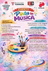 Asimismo, durante la presentación se dieron a conocer las bases del concurso emblemático “Pinta tu Música”, en su edición número 17, actividad que invita a niñas y niños a expresar su creatividad a través del arte, inspirados en la música y los contenidos de la emisora. Con estas acciones y por instrucción del alcalde, el Lic. Román Alberto Cepeda González, Radio Torreón 96.3 FM reafirma su compromiso social y cultural como medio público, promoviendo espacios que contribuyan al