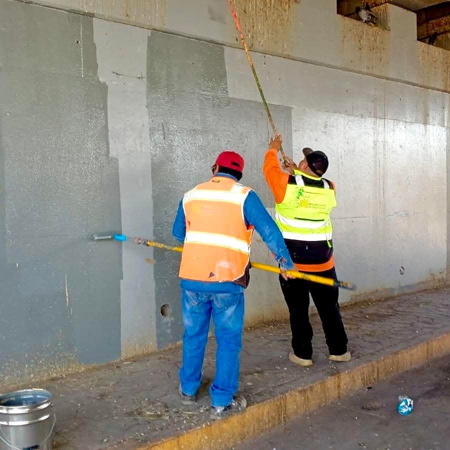 El director de la dependencia, Juan Adolfo Von Bertrab Saracho, informó que las labores se concentran en la aplicación de pintura sobre las estructuras, lo que permite eliminar grafiti y recuperar la apariencia de estos puntos de alta afluencia vehicular.
